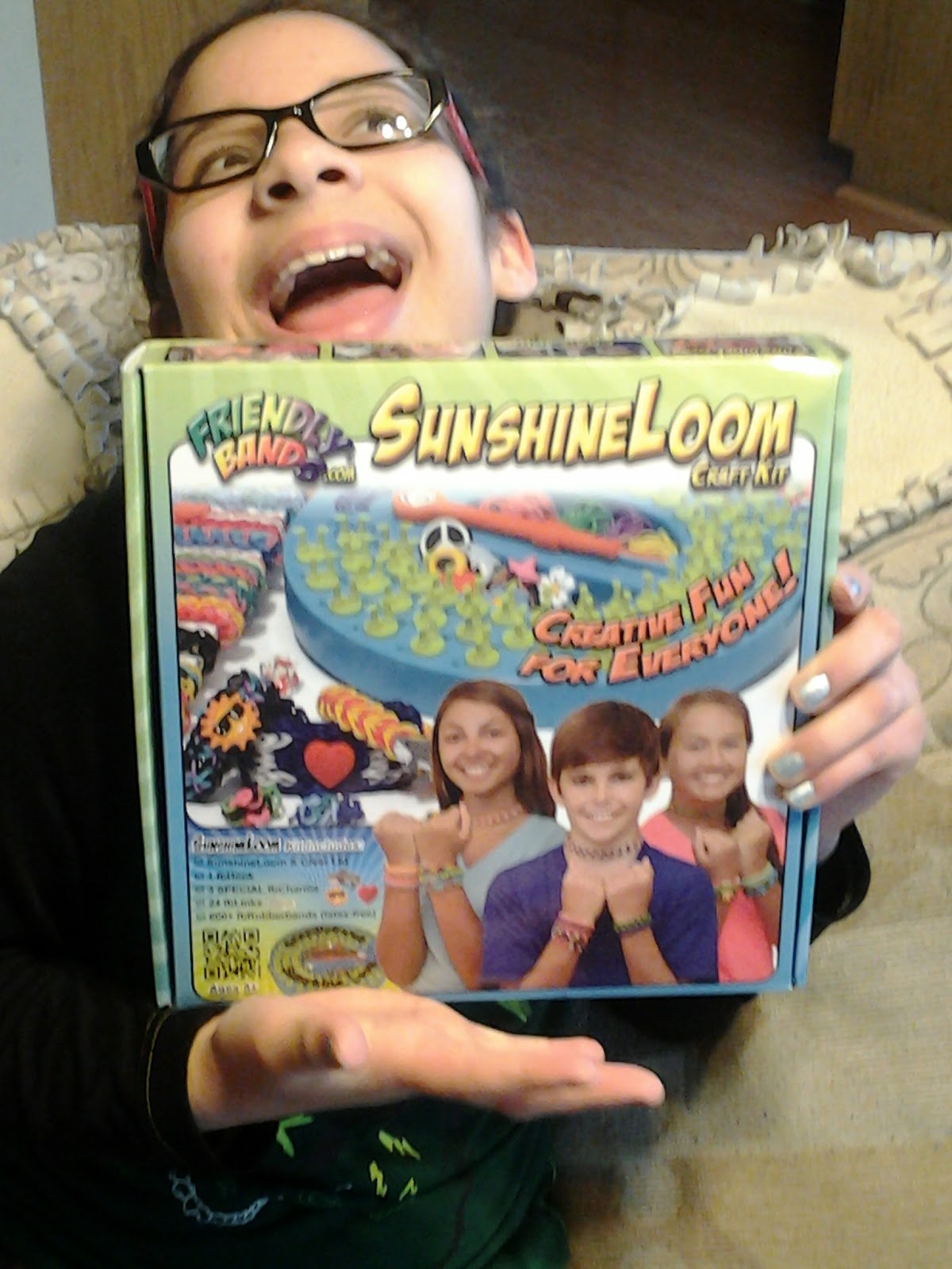 Teenie and I really liked how organized this loom kept us. Pretty much all of the pieces can be stored right inside. There is even a special place for your hook! The hook itself is easy to use and has a comfortable to hold design. With our old loom we had to keep the box just so we could have a place to put everything. I also noticed that this loom seems to be sturdier than other looms we have used (we have owned and broken several). Teenie loved the assortment of bands that came with the SunshineLoom, especially the two-color ones. Also, it's a big loom, so we didn't have to buy a bunch of extensions.